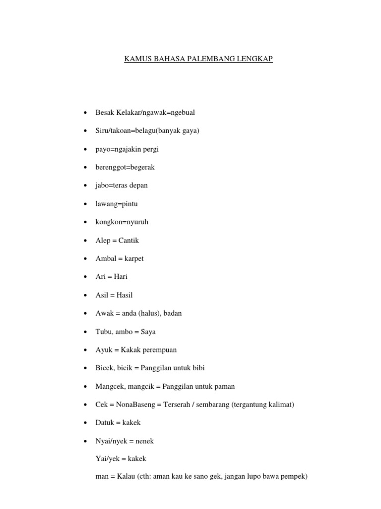 Mengenal Kamus Bahasa Palembang Lengkap Halaman 1