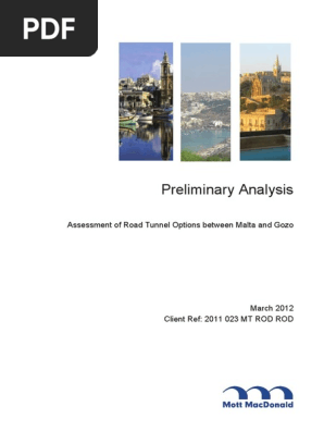 Preliminary Analysis Assessment Of Road Tunnel Options Between Malta And Gozo Mott Macdonald Tunnel Malta